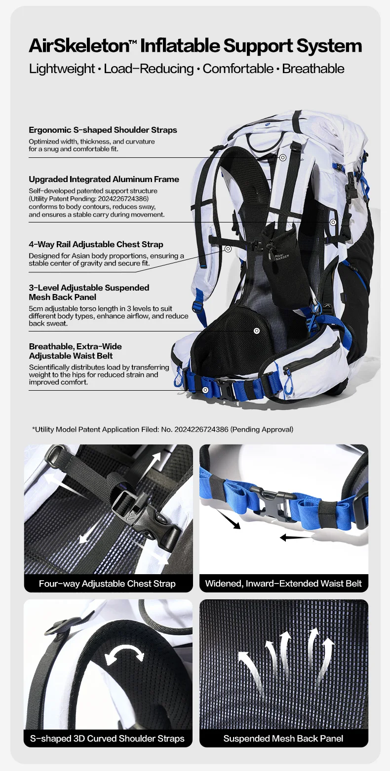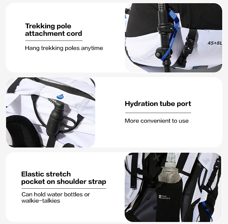 MOBI GARDEN 45L + 8L Dyneema AirSkeleton 하이킹 배낭 다기능 등산 가방 야외 여행 트레킹 캠핑 팩