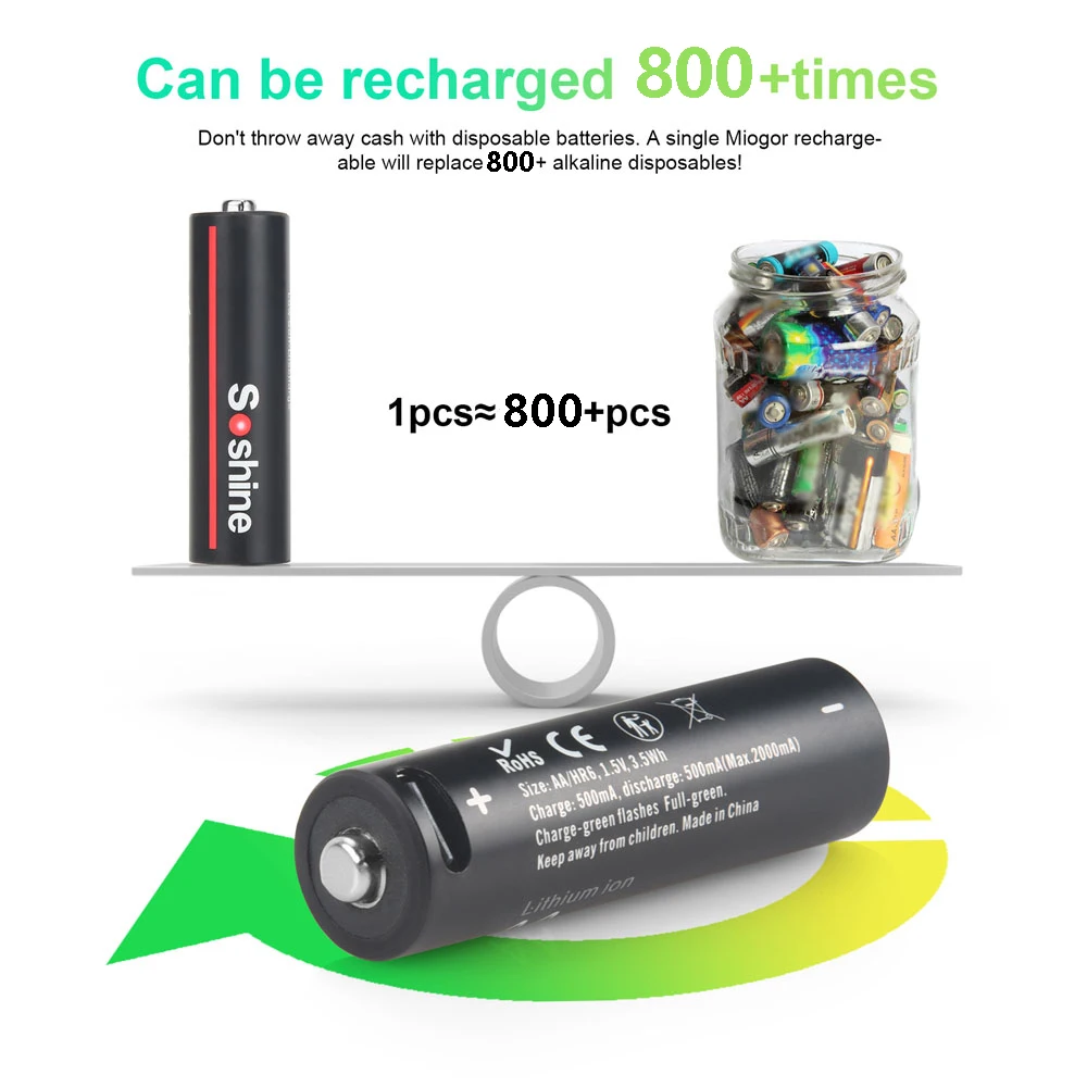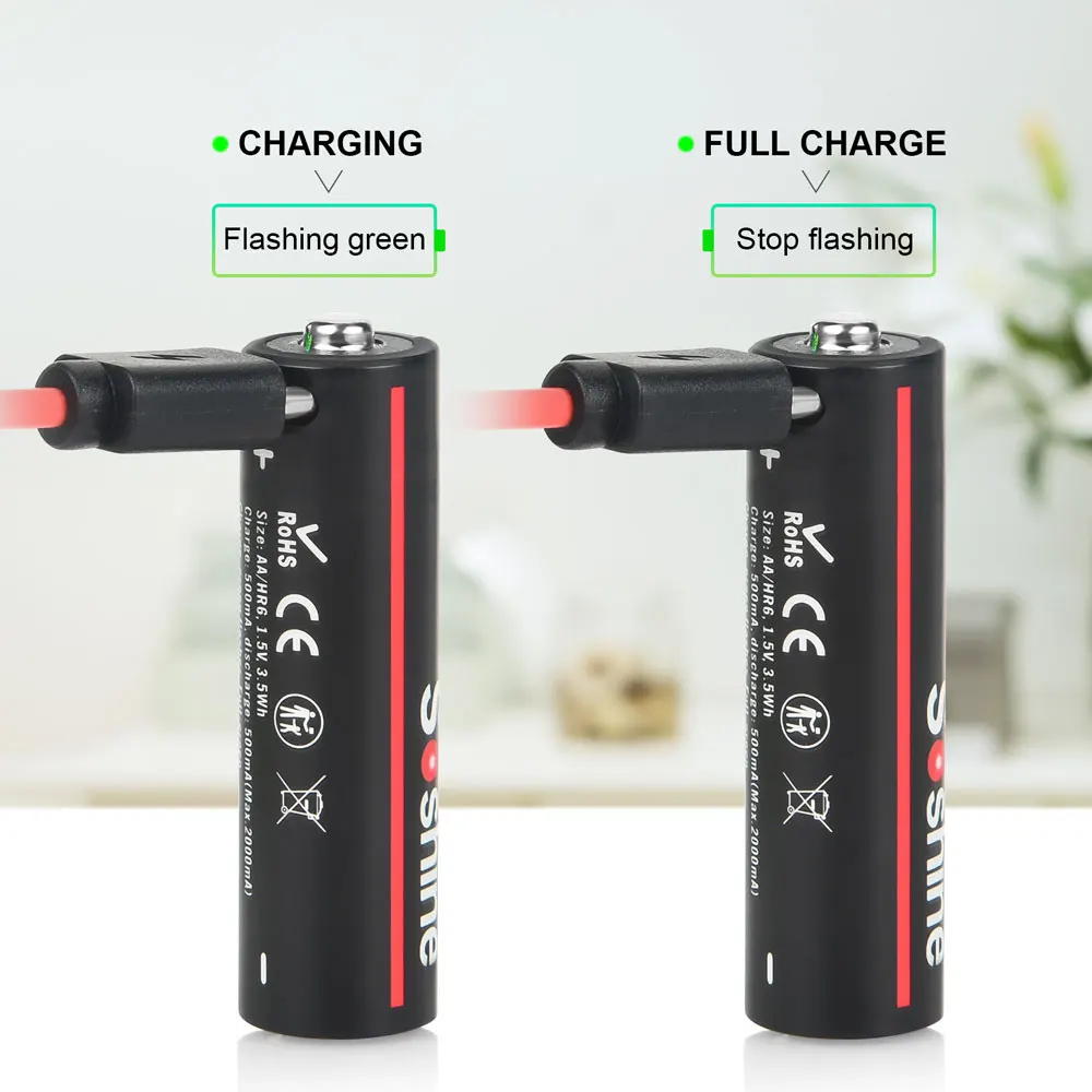 Soshine AA 리튬 충전식 배터리 1.5V USB 3500mWh 배터리 게임 기계 카메라 연기 감지기 전기 장난감 마우스
