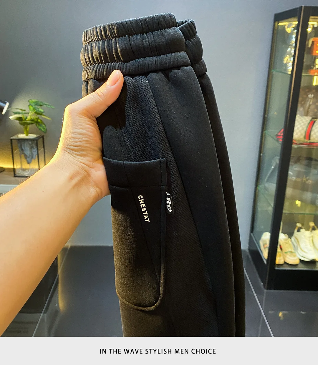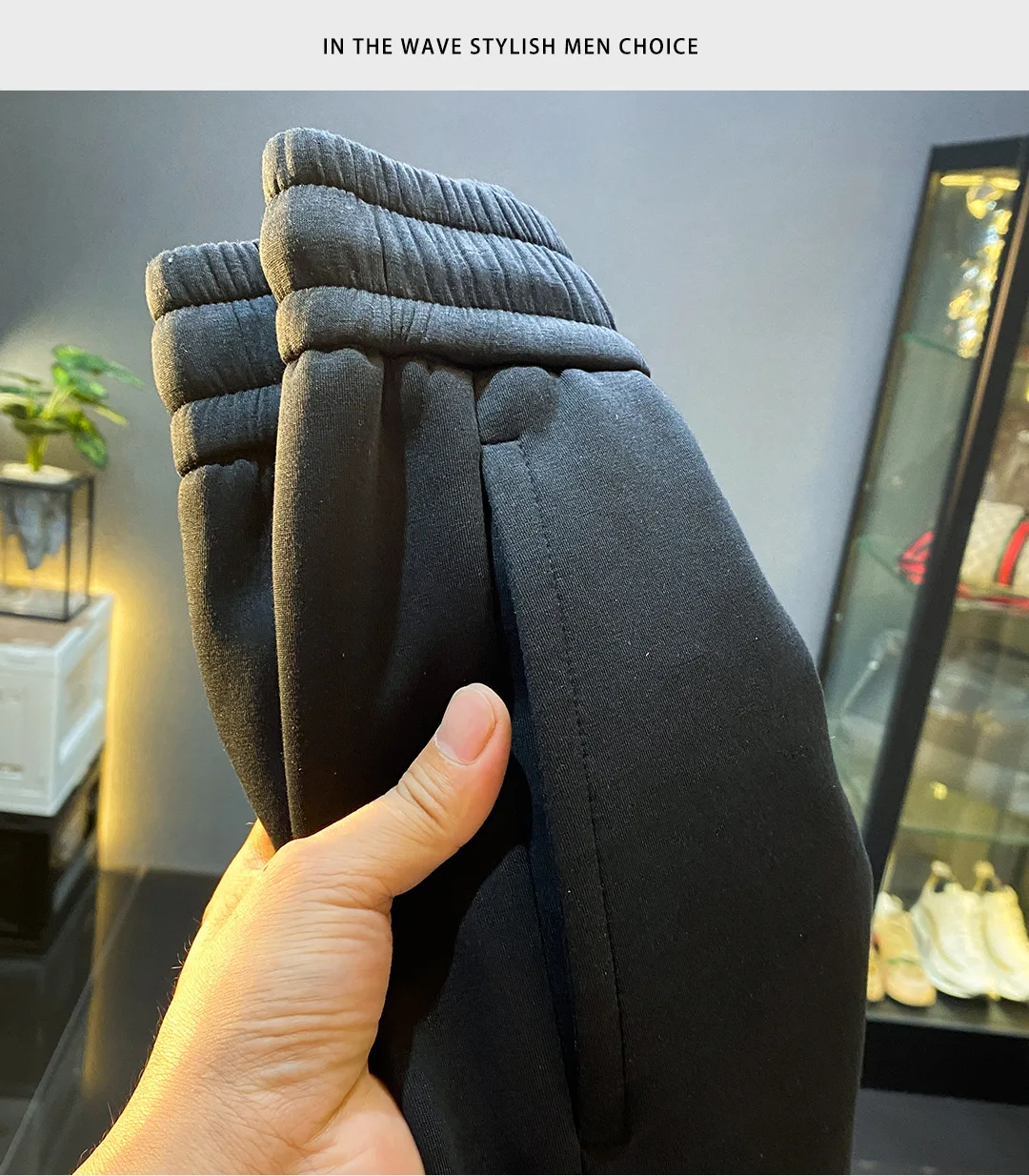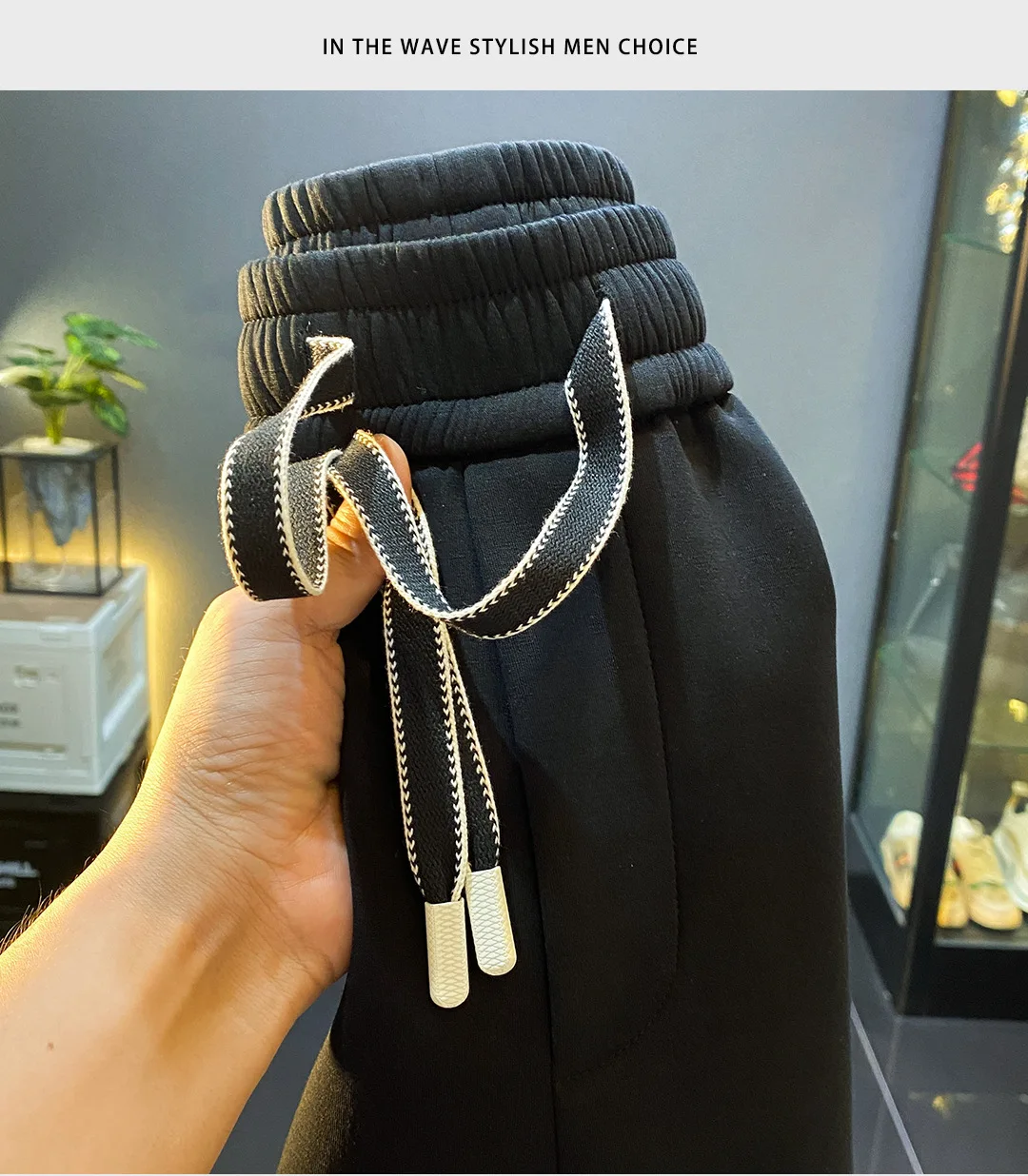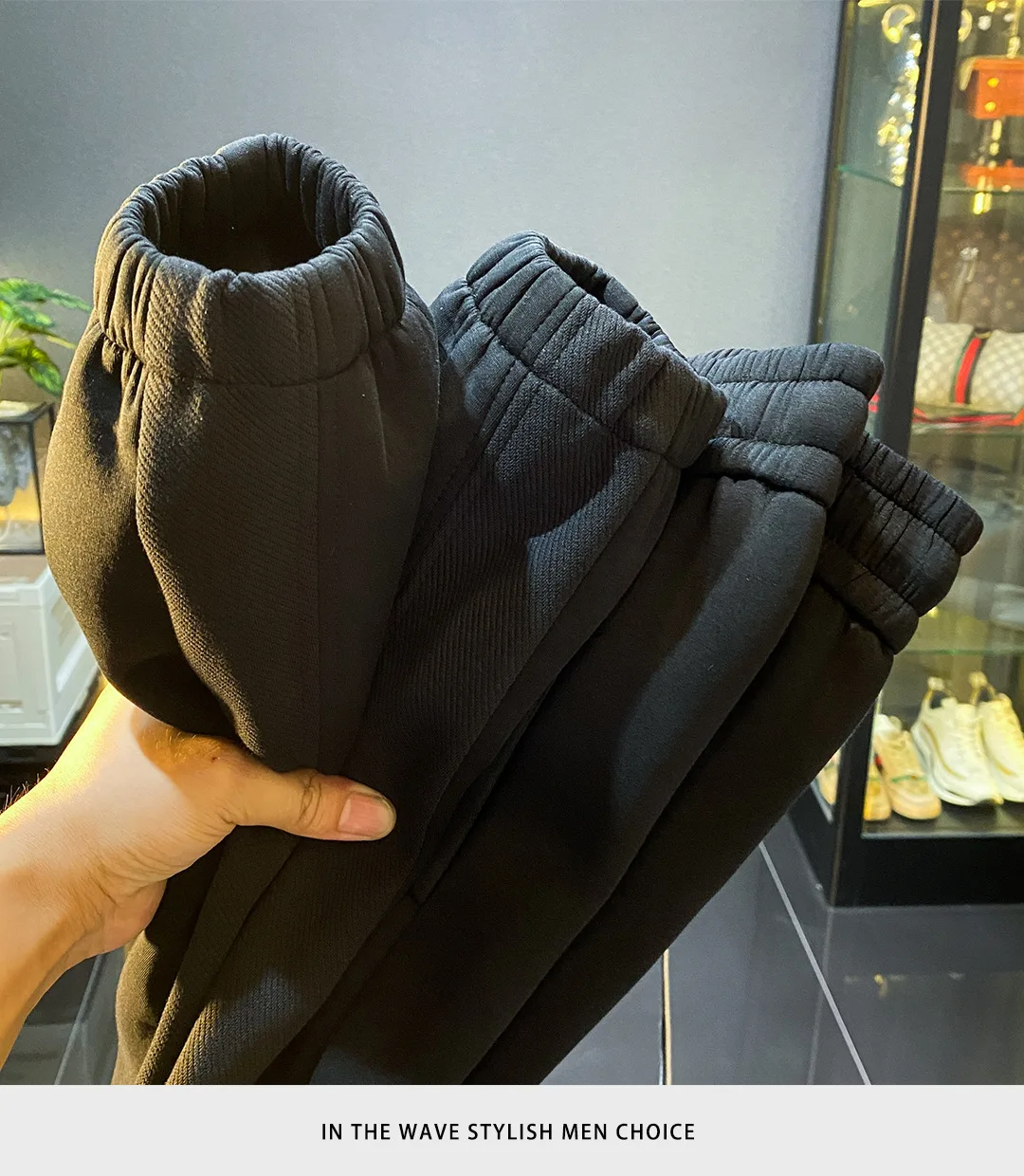 남성용 스포츠 바지, 가을 및 겨울 두꺼운 패션, 발목 묶음 캐주얼 다목적 느슨한 탄성 하이 엔드 니트 스웻팬츠
