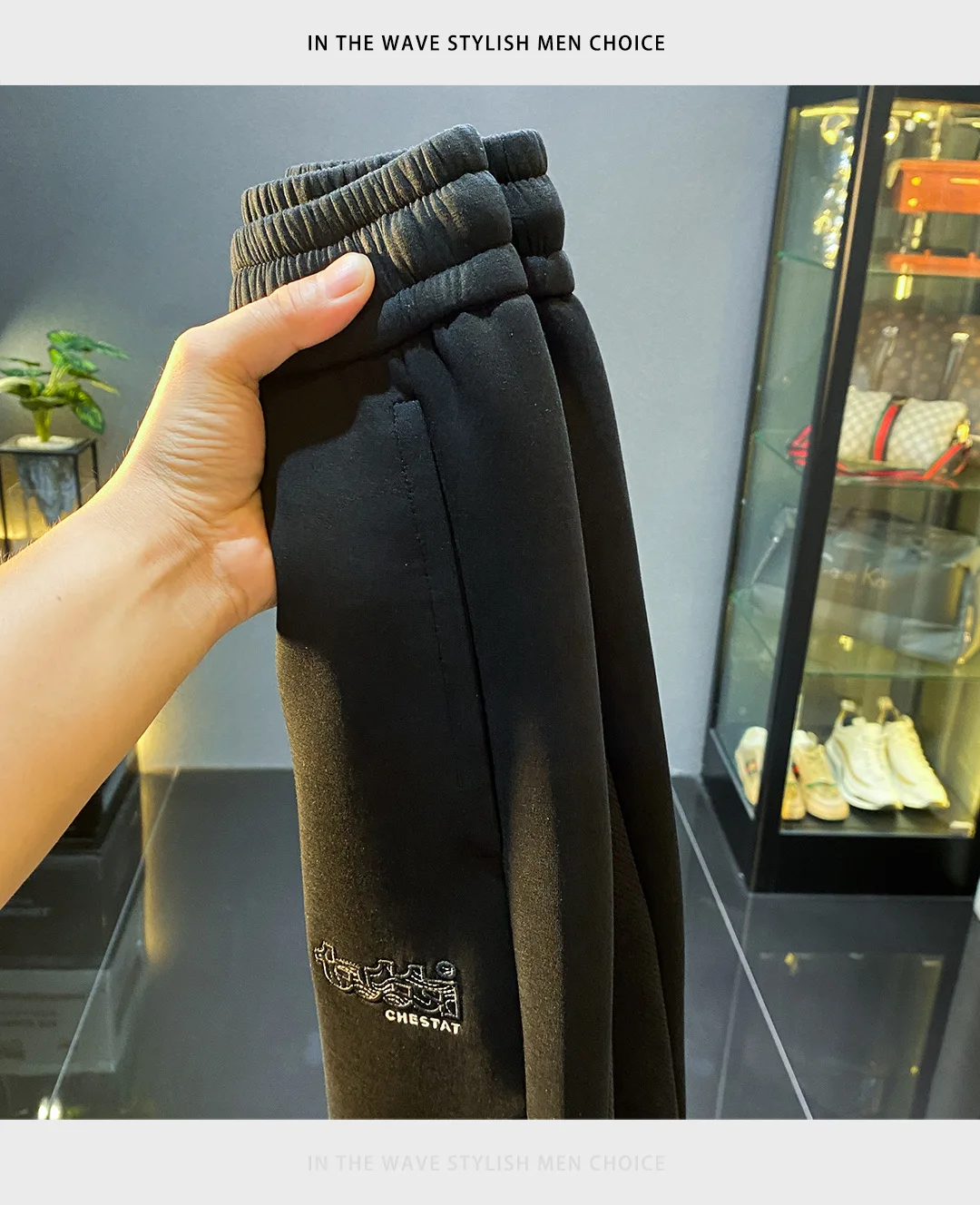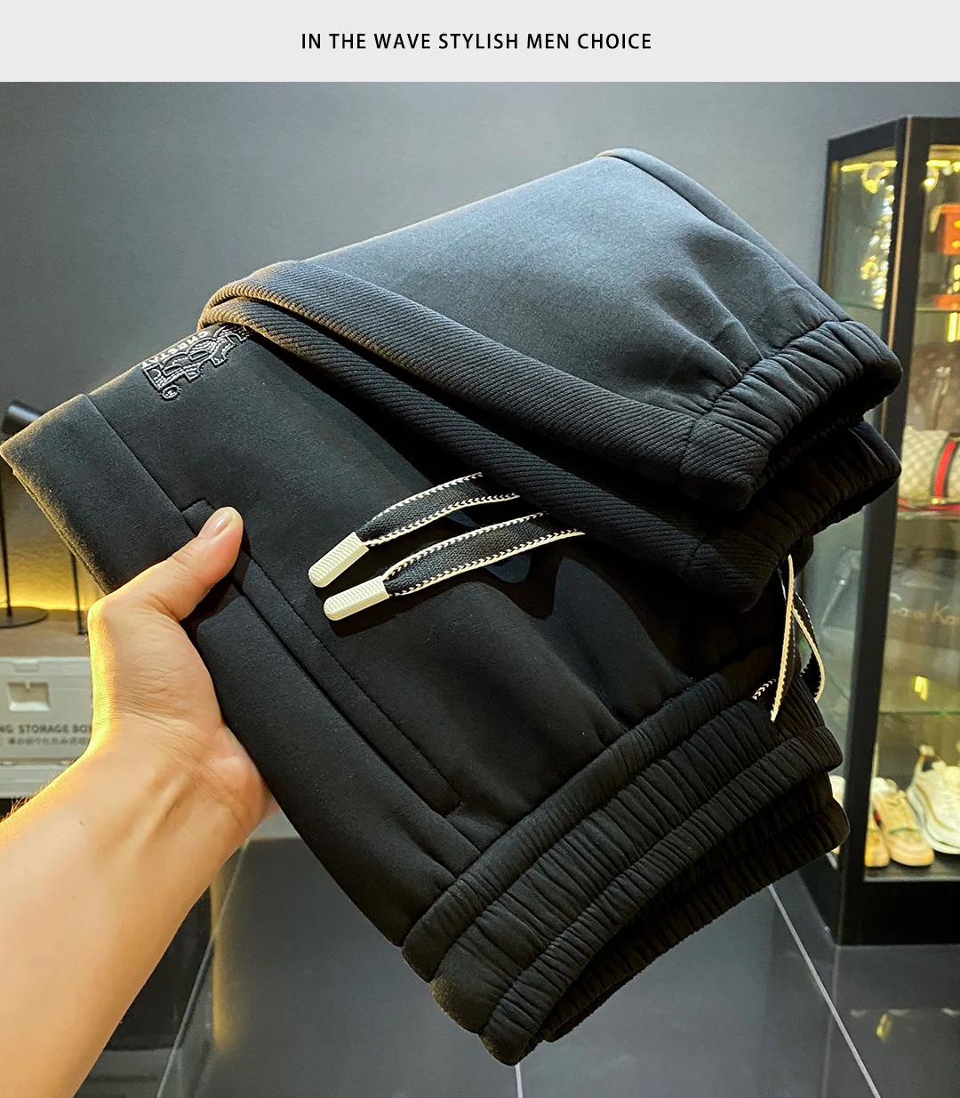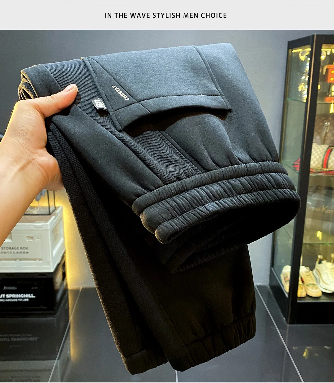 남성용 스포츠 바지, 가을 및 겨울 두꺼운 패션, 발목 묶음 캐주얼 다목적 느슨한 탄성 하이 엔드 니트 스웻팬츠