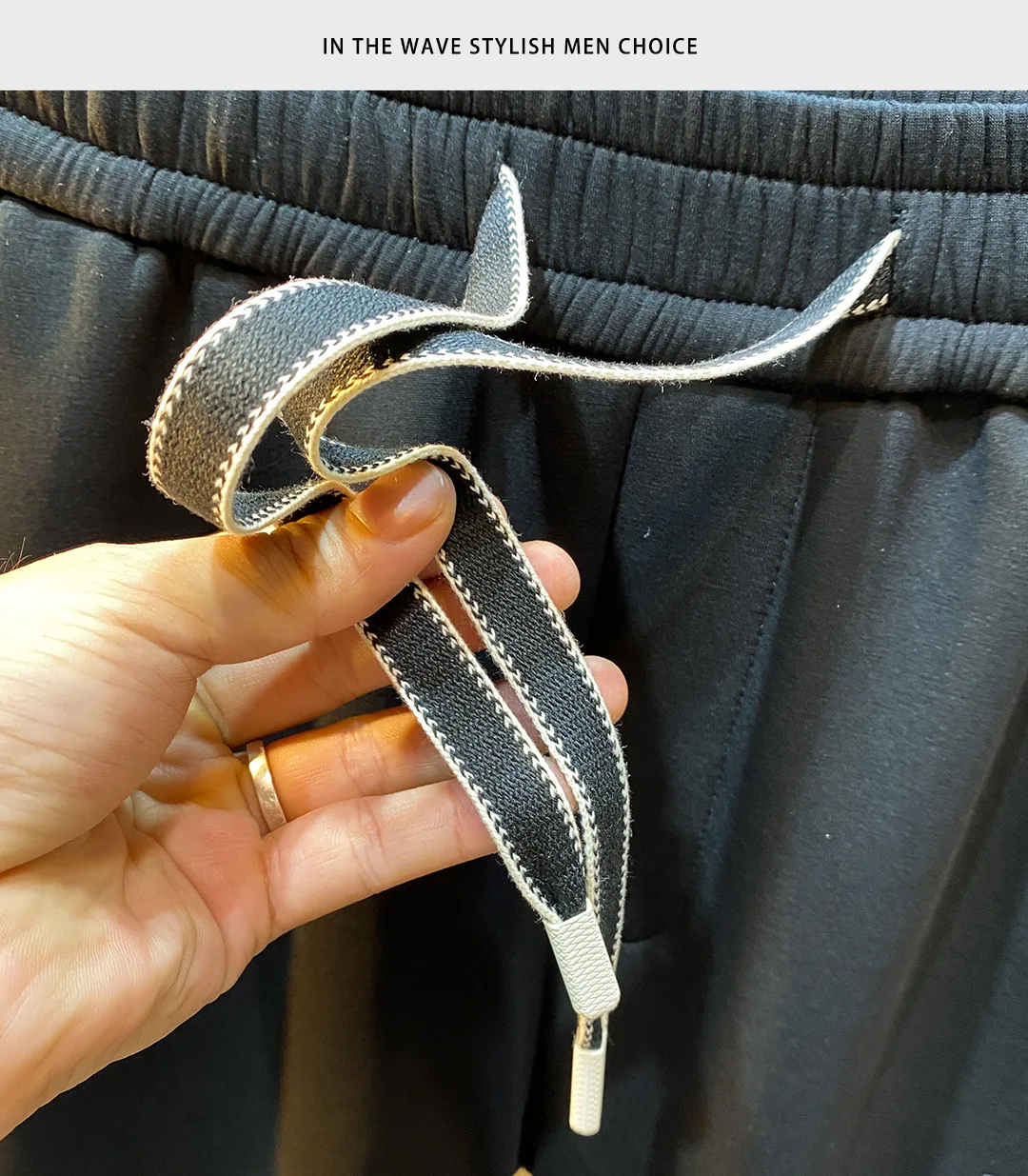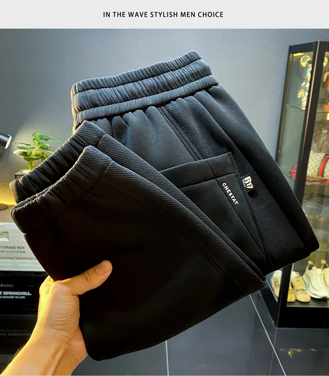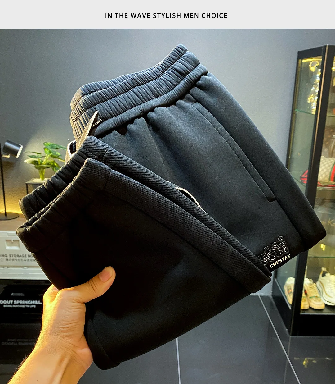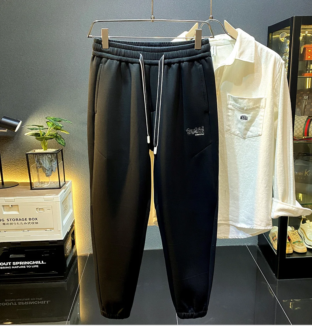 남성용 스포츠 바지, 가을 및 겨울 두꺼운 패션, 발목 묶음 캐주얼 다목적 느슨한 탄성 하이 엔드 니트 스웻팬츠