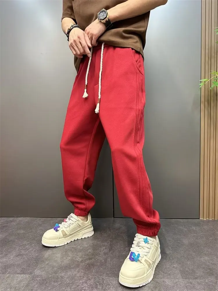 남성용 빨간 조거, 드로스트링 캐주얼 바지, 운동 러닝 코튼 스포츠 바지, 남성 의류, 가을, 스웻팬츠, 겨울, 신상