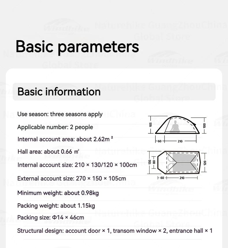 내부 텐트 크기: 210×130/120x100cm