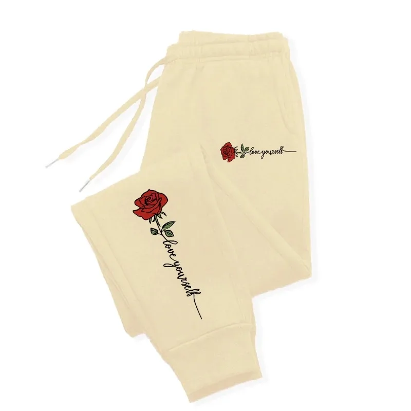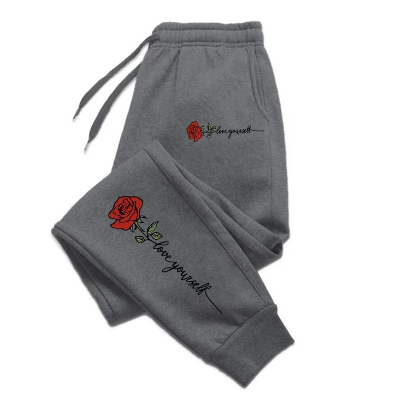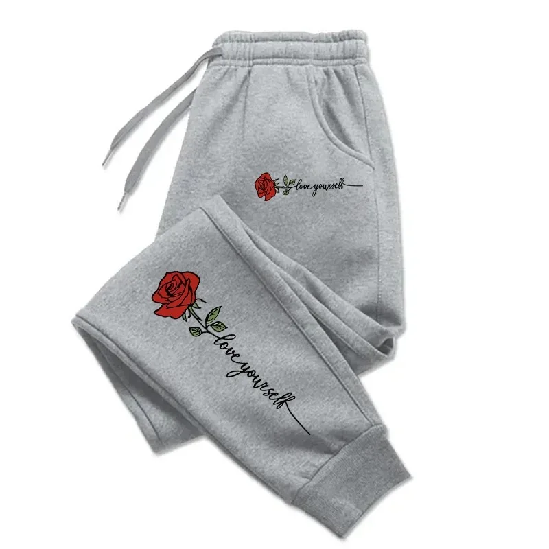 드로스트링 스웻팬츠 S-3XL 캐주얼 커플 팬츠, 패셔너블 로즈 러브 유너 프린트 힙합 바지, 인기 판매