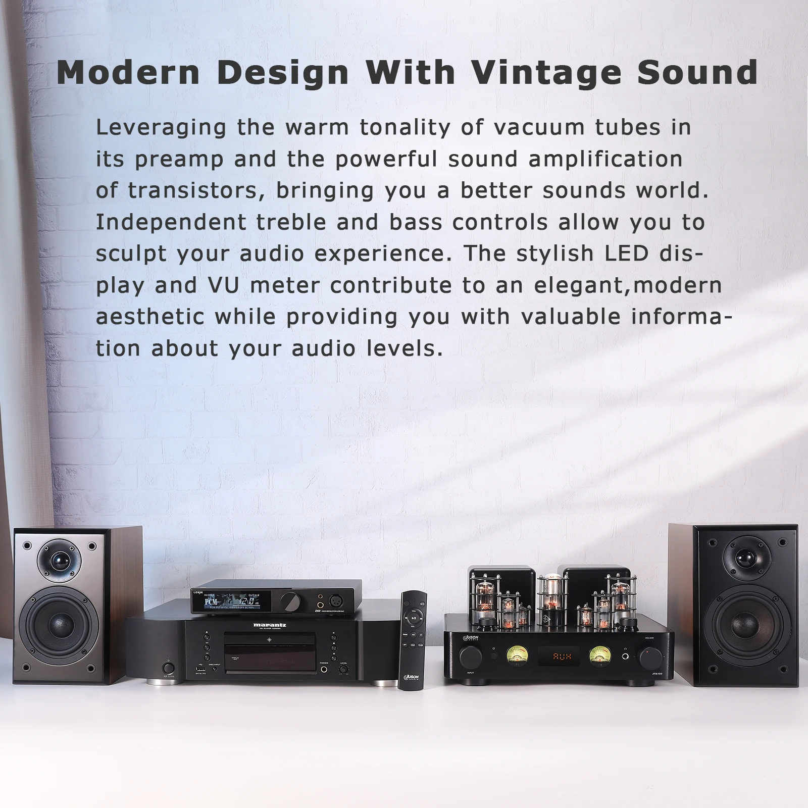 주손 오디오 JTA100 업그레이드 200W 하이브리드 진공관 앰프 (BT 5.0, 광, AUX, RCA 포노 입력 및 헤드폰/서브 출력 포함)
